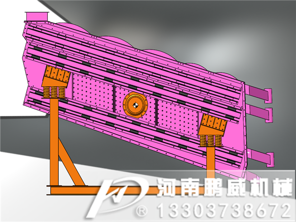 采用雙組側板電機激振器由偏心塊同步旋轉共振帶動彈性聚氨酯篩板產生波浪弛張振動的圓彈躍運動和直線彈躍運動,篩面傾角一般為15-25°篩板由兩端活動梁固定,配合剪切彈簧和板簧產生高振幅振動達到固定橫梁和活動橫梁對篩網的慣性力矩不斷地張弛形成一凹一凸的波浪效果達到物料良好的松散流動性同時獲得有效的物料彈躍篩分,實現篩分精度,篩分產量和防堵網的效果。