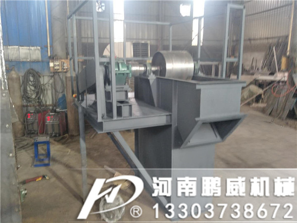 TD型斗式提升機主要由驅動裝置、上部區段、料斗與橡膠帶、中殼體、帶檢修門的中殼體、下部區段等組成,其主要結構特點是:采用橡膠帶作為牽引構件,具有自重小、撓性好、運行平穩、磨損小的特點。殼體之間、檢修門與殼體之間處均設置有密封裝置,保證無粉塵外泄,清潔、環保。機殼和頭罩設有多個檢修門,一旦出現故障或者需要更換料斗等易損件時,可以便捷的進行檢修或更換。在傳統裝置內部設有高可靠性的逆止機構,在防止牽引件和載料料斗逆行的同時,使傳動裝置整體結構緊湊、占用空間小。中部殼體均為折彎構件焊接而成,在提高機殼整體剛度的同時,使機殼各段節具有良好的通用性和互換性,保證組裝完畢后,機殼具有良好的垂直度。在底部設有張緊機構,保證工作時皮帶有足夠的預緊力;同時在底部滾筒裝置中帶有自動調心機構,以防止滾筒受到不均勻拉力后發生傾斜,進而造成設備故障。